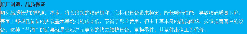 為了確保麥修拓墨水能夠達到最好的效果和在噴碼機上高水平的運行,麥修拓墨水系列都是依托德國工廠的高研發(fā)能力,并且在國內(nèi)經(jīng)過長時間、多環(huán)境的測試,完全能夠達到原廠家提供的墨水質(zhì)量,我們才投放市場,為廣大客戶提供服務(wù),我們著重保證,墨水和其它消耗品的品質(zhì),保證噴碼效果和機器穩(wěn)定持續(xù)精確。